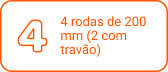• 4 rodas de 200 mm, 2 com travão.