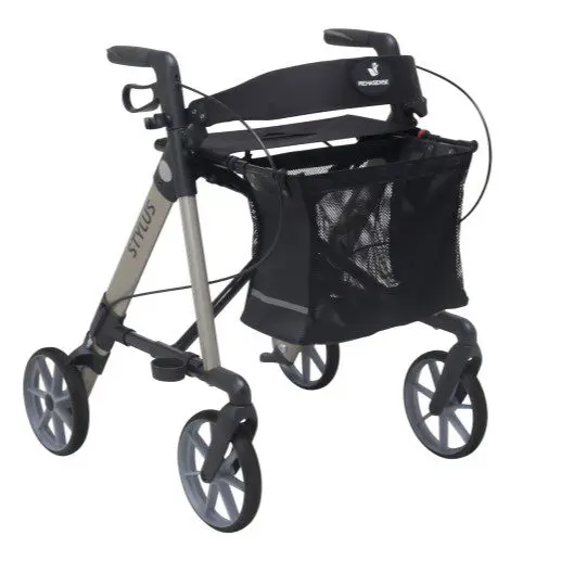 O andarilho com rodas Stylus é leve e altamente resistente e tem a grande vantagem de se fechar.